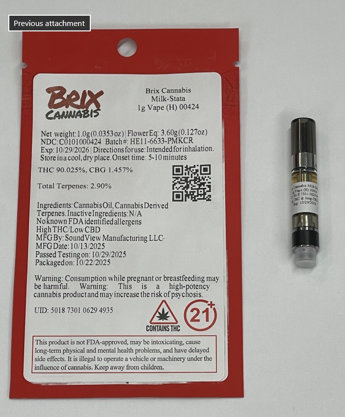 Milk-Stata 1g Vape (H) 00424