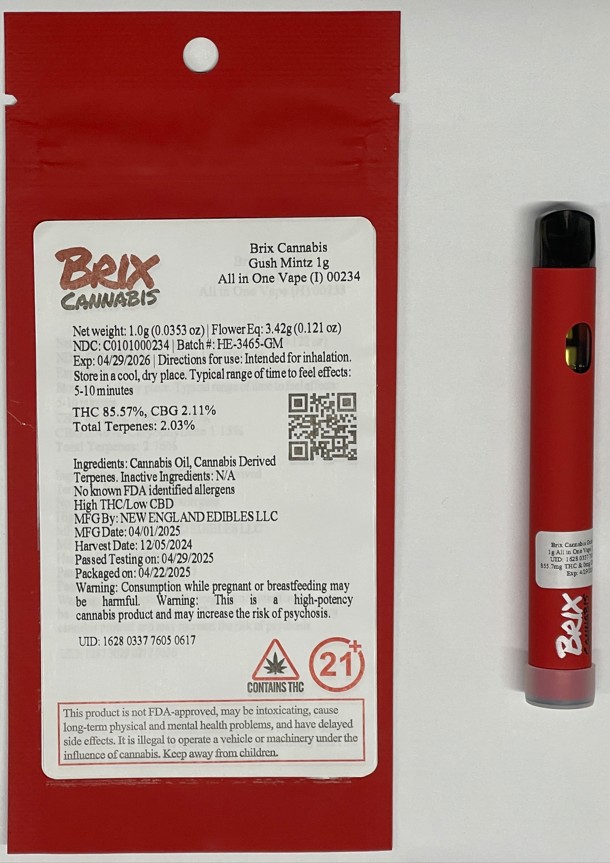Brix Cannabis Gush Mintz 1g All in One Vape (I) 00234