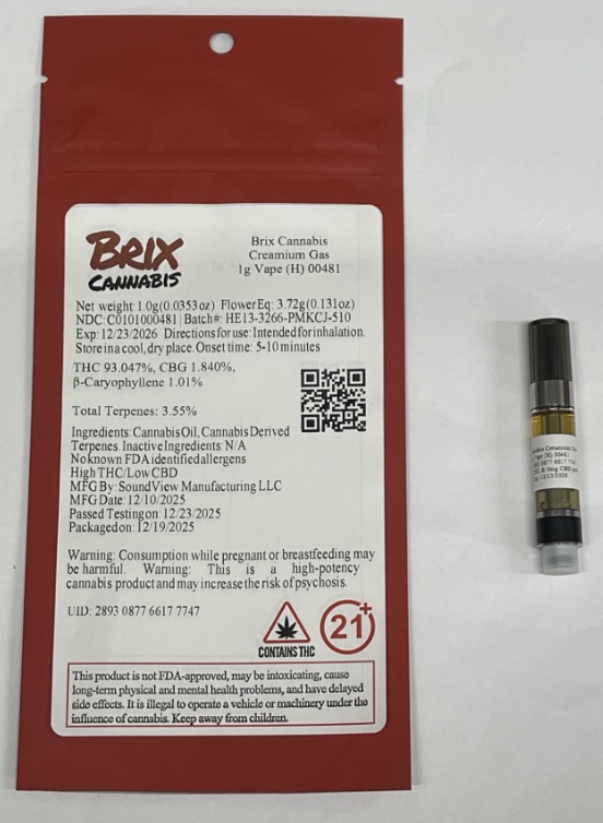 Brix Cannabis Creamium Gas 1g Vape (H) 00481