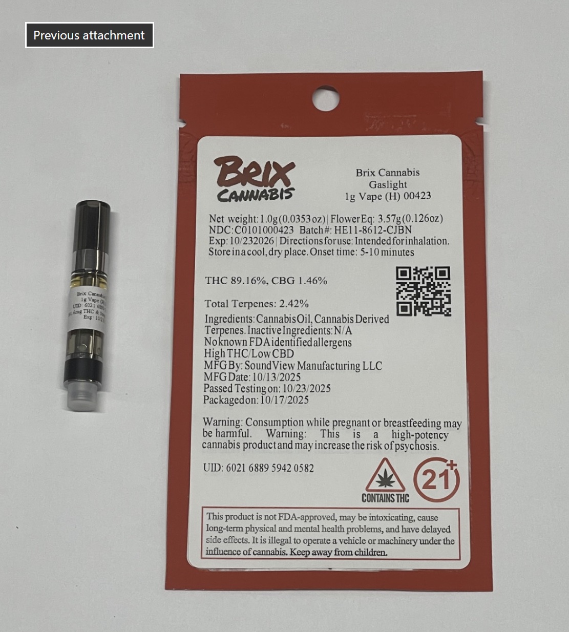 BRIX CANNABIS GASLIGHT 1G VAPE (H) 00423