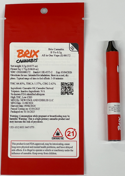 Brix Cannabis B Yo 0.5g All In One Vape (I) 00165 (0.5g Disp)